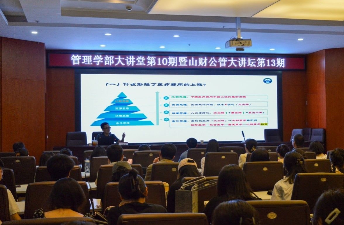 2024年6月21日下午,武汉大学教授、教育部青年长江学者王增文做客管理学部大讲堂暨山财公管大讲坛,做了主题为“医疗保障筹资机制与实施路径”的精彩学术报告。副院长冯小俊主持了报告会,学校百余名师生聆听了报告。