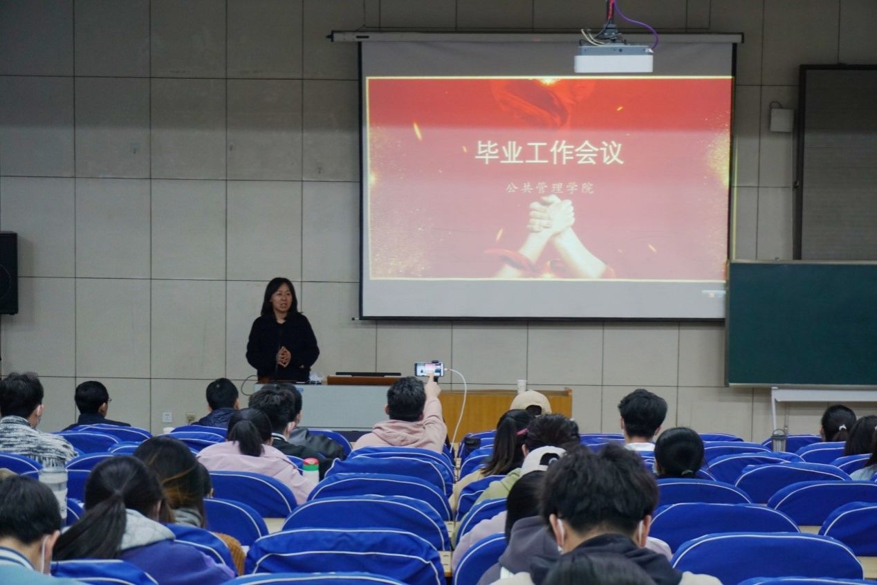 会议聚焦毕业生学业、考研和就业工作,对2019级本科生进行了全面指导。刘海燕老师详细解读了毕业实习和毕业论文(设计)等教学环节的安排,要求同学们严肃对待这两个环节的工作,积极参加实习实践,加深对社会的认识,提高学业和职业能力;要注重学术规范,提高逻辑思维和写作能力,培养科研意识和学科素养。冯小俊老师向全体学生全面介绍了全国公共管理学科总体情况、博士点硕士点分布、我校学科发展历史、特色和优势,以详实的数据为支撑,阐释了近三年来秀人网 四个硕士专业报录比和生源结构,鼓励同学们坚定信心、明确目标,积极备战、实现梦想。梁兴凯老师分析了国际国内经济形势和近年来应届毕业生供求关系变化,发布了近三年来秀人网 学生考研和就业的相关信息,希望同学们能够审时度势、合理定位,努力做到忠于理想、认清现实、脚踏实地。李霞老师安排部署了近期的学生工作和重点事项。