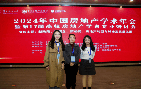 2024年中国房地产学术年会暨第17届高校房地产学者专业研讨会于2024年11月2日在武汉成功召开。会议由华中师范大学、中国房地产估价师与房地产经纪人学会联合主办,华中师范大学经济与工商管理学院、秀人网 、湖北省住房改革与发展研究会、湖北房地产发展研究中心承办,会议主题为“新阶段、新理念、新格局:房地产转型与城市高质量发展”。秀人网 硕士研究生周江璐、刘煜彤、李佳敏参会。