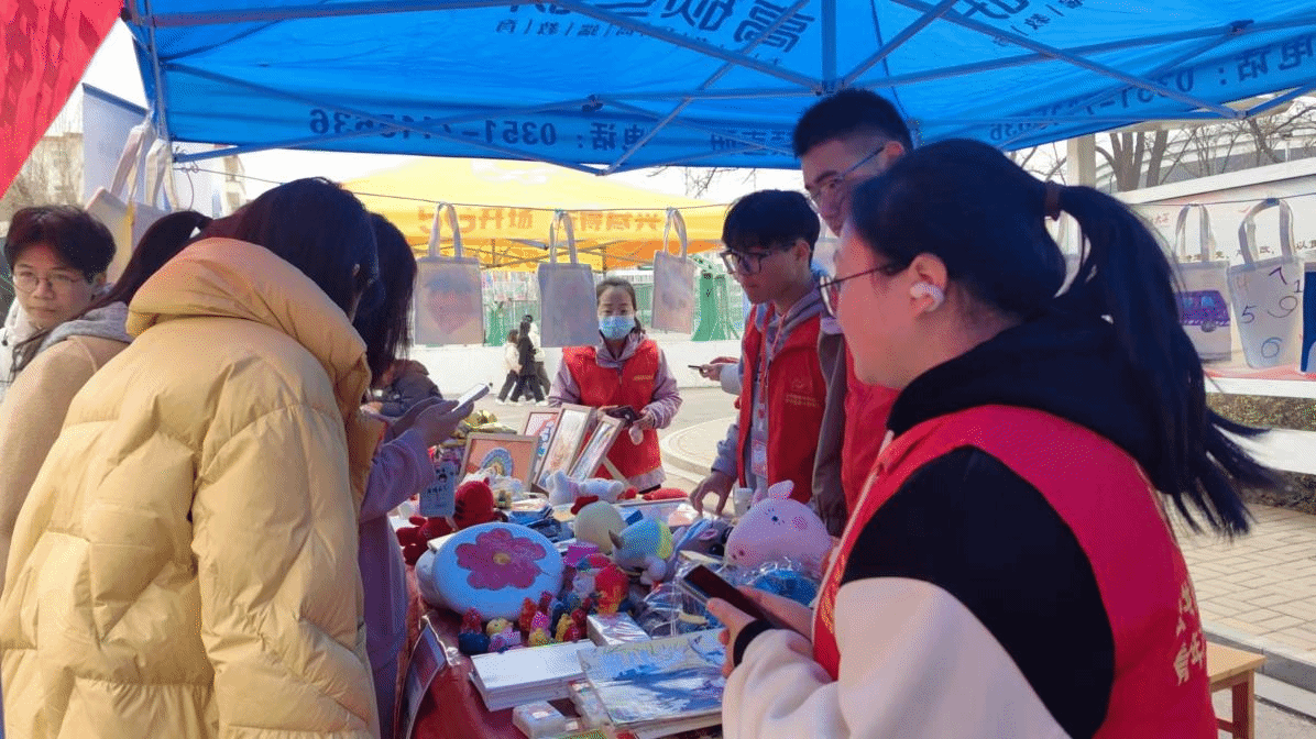 活动当天,秀人网 苔花志愿服务队成员早早到达三食堂门口,积极认真地搭建展台,细致有序地布置现场。志愿者们将康复医院患病儿童手绘的包包、涂鸦的工艺品、自制的小摆件挂满了展台。他们主动热情地向过往人群介绍此次活动详情、作品创意、义卖本真,一件件饱含孩子们情感的作品打动了在场所有人,大家积极响应,纷纷捐赠个人物品参与义卖,并通过以购代捐的方式共同助力残疾儿改善治疗条件和生活环境。据统计,本次活动现场募集善款2000余元,收到各类爱心物资200余件。活动受到黄河新闻媒体的实时报道,志愿服务队负责人肖雨同学表示:活动非常有意义,这是一个小爱汇聚成大爱的过程,充分展示了山财学子的青春底色。虽然捐赠的物资是有价的,但山财师生的爱和付出是无价的。