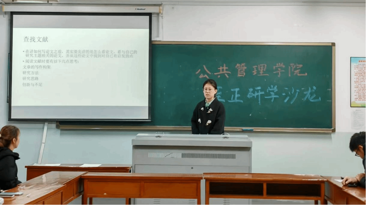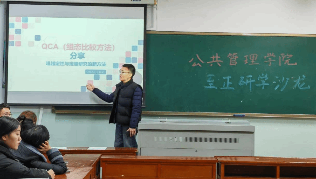 活动邀请三个专业研究生代表就研究课题、研究方法以及论文写作技巧等方面开展学术经验分享。王乾呈同学聚焦于研究方法领域,深入阐释QCA模型分析方法的四大关键步骤、详细分析流程及其核心优势所在,用实际行动助力广大同学在未来的学术研究中能巧妙运用QCA模型,为学术探索开辟新路径。王丹丹同学则以课题申报为切入点,着重强调课题申报务必精准洞察学术前沿热点以及社会实际需求,确立目标明确、独具创新性的研究目标与内容,具体涵盖挖掘独特研究视角、创新研究方法以及力求成果突破等维度。王黎华同学从写作经验出发,强调论文语言表述应追求简洁明晰、精准且具专业性,极力避免冗长繁复句式以及表意含混模糊的措辞,讲解了如何设计论文整体架构,注意连贯性与逻辑性,确保各部分内容紧密关联、环环相扣。