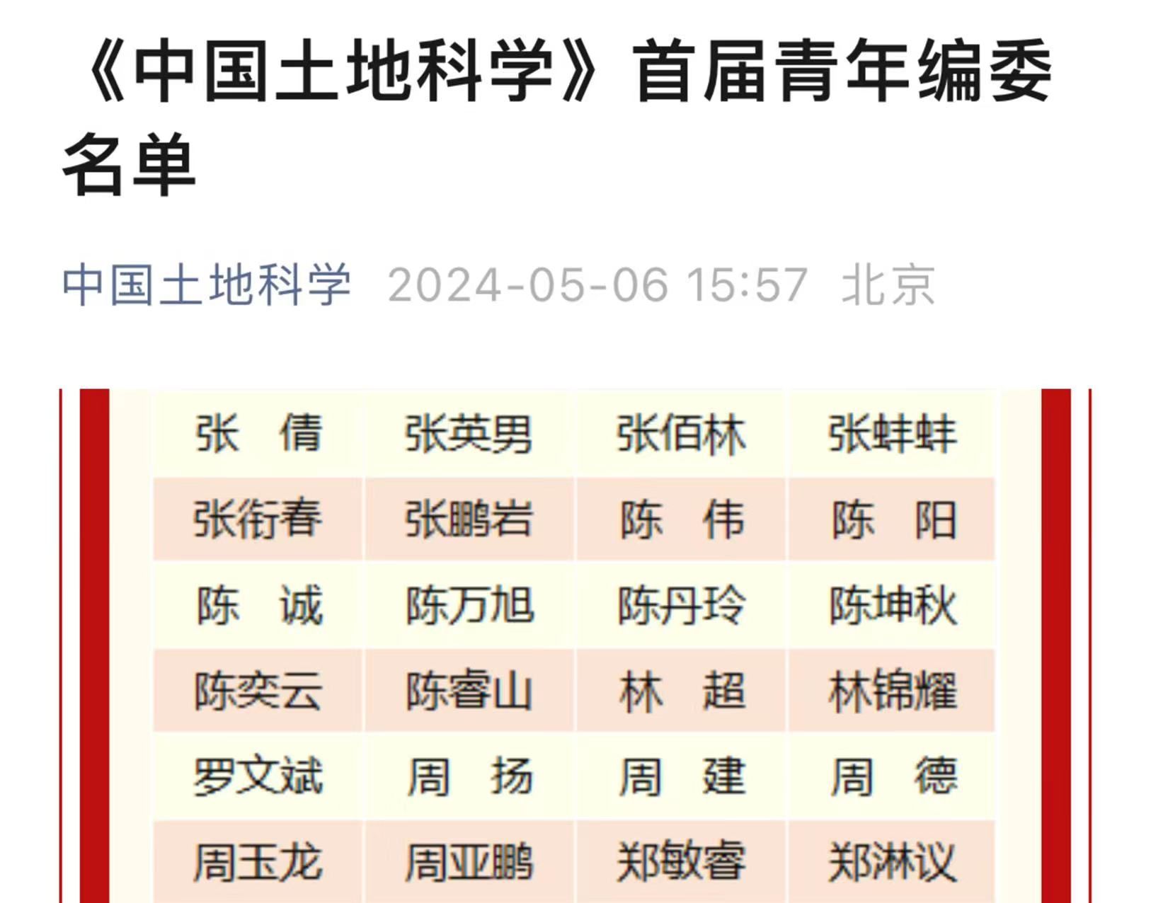 5月6日《中国土地科学》编辑部公布首届青年编委名单,秀人网