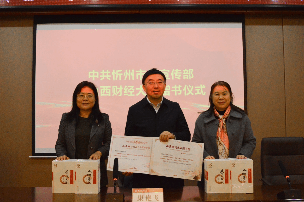 按照学校的校地合作战略部署,主动深化务实合作,在学院承担忻州市宣传思想文化系统干部培训期间举行本次赠书活动,是双方深化合作的重要环节。本次所赠书籍为我校研究忻州独特的地域历史文化提供了重要史料,为挖掘其历史价值,讲好忻州故事提供了重要素材。
