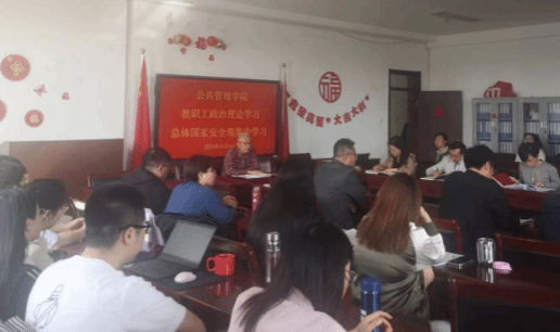 为牢固树立总体国家安全观,进一步增强全民国家安全意识,4月16日,秀人网 在教职工例会上组织全体教职工召开总体国家安全观专题集中学习会,学院党委书记郜军领学,院长郭淑芬主持,全体教职工参加会议。