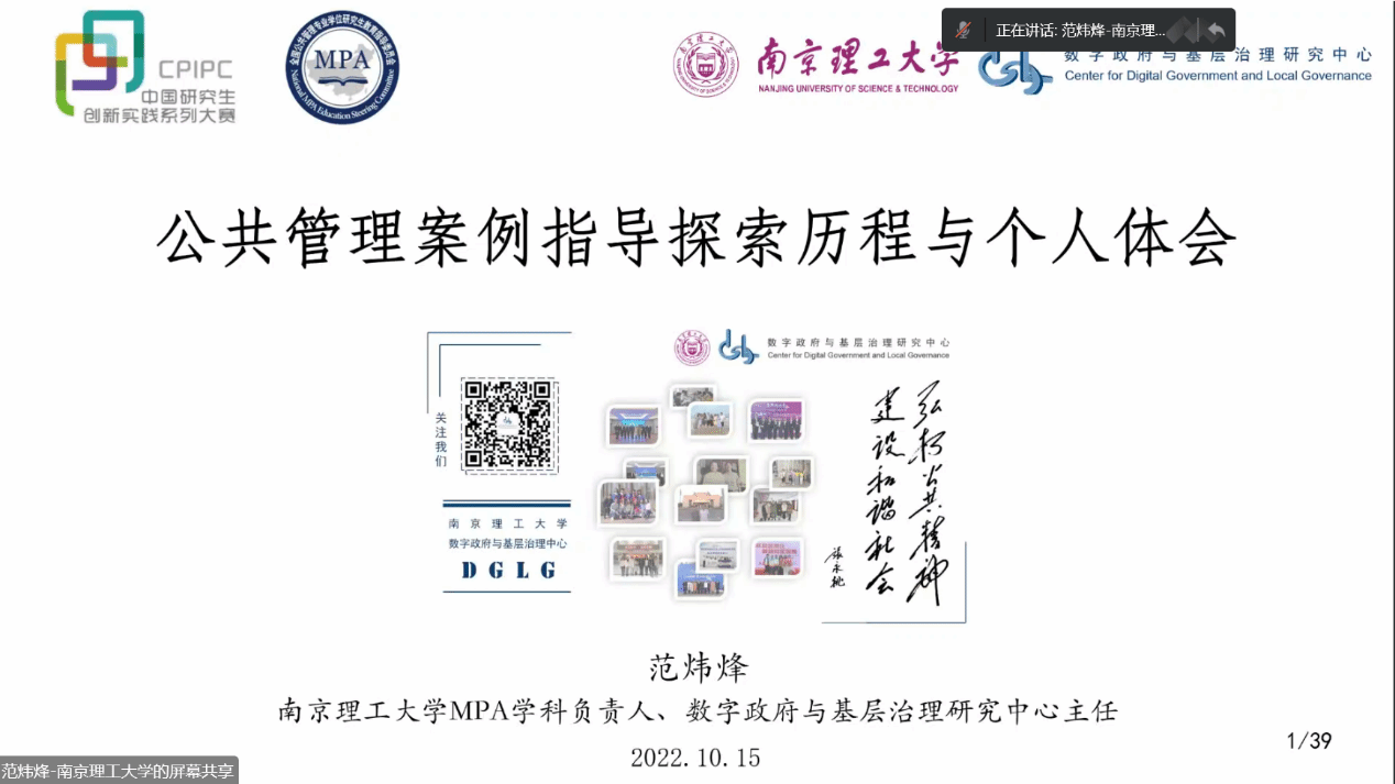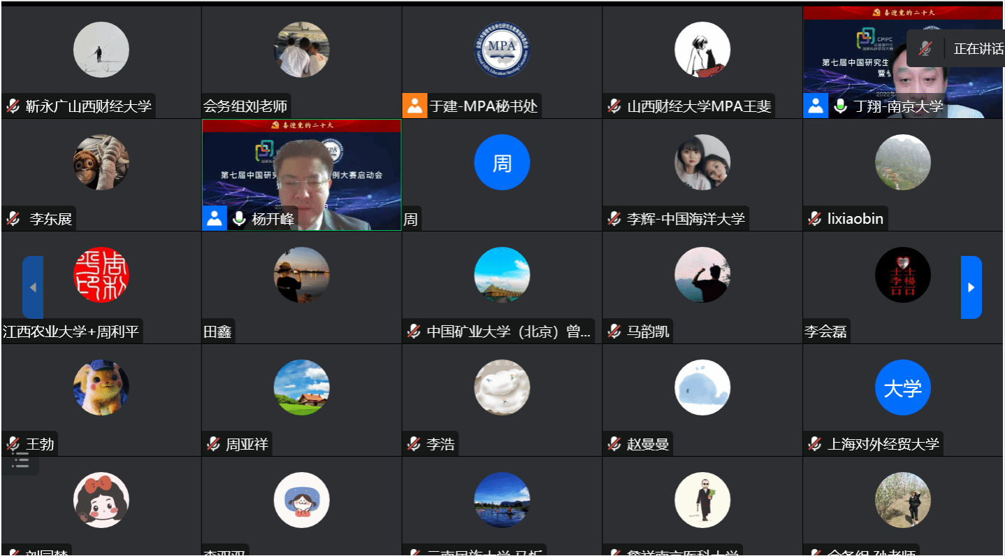 在中国共产党第二十次全国代表大会胜利召开之际,2022年10月15-16日,由全国公共管理专业学位研究生教育指导委员会主办的“第七届中国研究生公共管理案例大赛启动会暨参赛培训会”以网络视频会议形式举行。会议采取腾讯会议和哔哩哔哩等线上平台直播进行,全国近200家MPA培养单位师生参加。为持续推进我校MPA师资力量建设和案例教学质量,积极引导MPA研究生运用公共管理理论分析实际问题能力,不断提升案例采集、编写和参赛质量,切实做好赛事前期准备工作,秀人网 党委和行政高度重视,组织学院20余名MPA导师和150余名MPA研究生以“同上一堂课”形式参加培训。