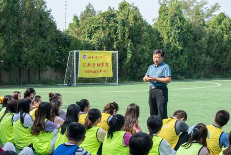 学院党委书记董军伟代表学院领导班子致辞。在致辞中,董书记首先向考取财大MPA研究生的新生表示祝贺,对同学们的到来表示热烈欢迎。强调本次实践教学(素质拓展)活动的意义在于培养大家克服困难的毅力、积极进取的态度和精诚合作的意识,勉励同学们珍惜在校学习时光,认真学习,加强交流,要求同学们注意学习的纪律性、自觉性、实践性、统筹性要求,希望同学们学有所获,学有所成。