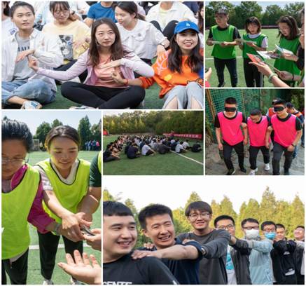 实践教学(素质拓展)活动包括趣味热身、破冰建队、牵手巡游、急速六十秒、趣味运动竞赛、驿站传书和总结交流等项目。趣味热身化解了同学们初次接触的生疏,用拍背、捏肩、抓手指等小游戏消除隔阂;破冰建队让大家合作取队名、想口号、画队旗、编队歌,迅速调动了大家的积极性;牵手巡游增强了小组成员之间的默契程度,培养了同学们团结协作的精神;急速六十秒充分展现了同学们的集体智慧,同时让大家了解到分享的重要性;趣味运动竞赛中大家分工合作,共同完成比赛项目,锻炼了同学们的分工合作能力;驿站传书增强了团队的整体性,提升了同学们的管理沟通能力。每一项活动最后,教练对活动项目进行深度点评,各队代表也分别分享了自己的收获和感悟。