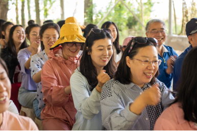 活动伊始,参加活动的师生在“互相拍背”、“反手捏鼻”等小游戏中舒缓了身心,拉近了彼此距离。随后,培训师将大家分为了三支队伍,各队通过自我介绍、推举队长、制定队名口号、制作队旗等一系列环节完成了团队建设。最终, “无敌队”、“蓝色闪电队”和“绿水青山队”横空出世,并依次进行了团队展示,展现出了大家良好的精神风貌。