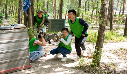 紧接着,正式的拓展训练开始。在“真人CS”项目中,三队分组对抗,师生们“荷枪实弹”、全副武装,以高涨的热情投入到虚拟的“战场”中。在掩体、草丛、树木的遮挡下,师生们躲避、瞄准、射击,体验到了肾上腺素的急速飙升;在一次次埋伏包围、掩护突袭中,团队协作与战术安排发挥的淋漓尽致。项目结束后,虽然大家一个个灰头土脸、汗流浃背,但团队的凝聚力得到了明显提升。